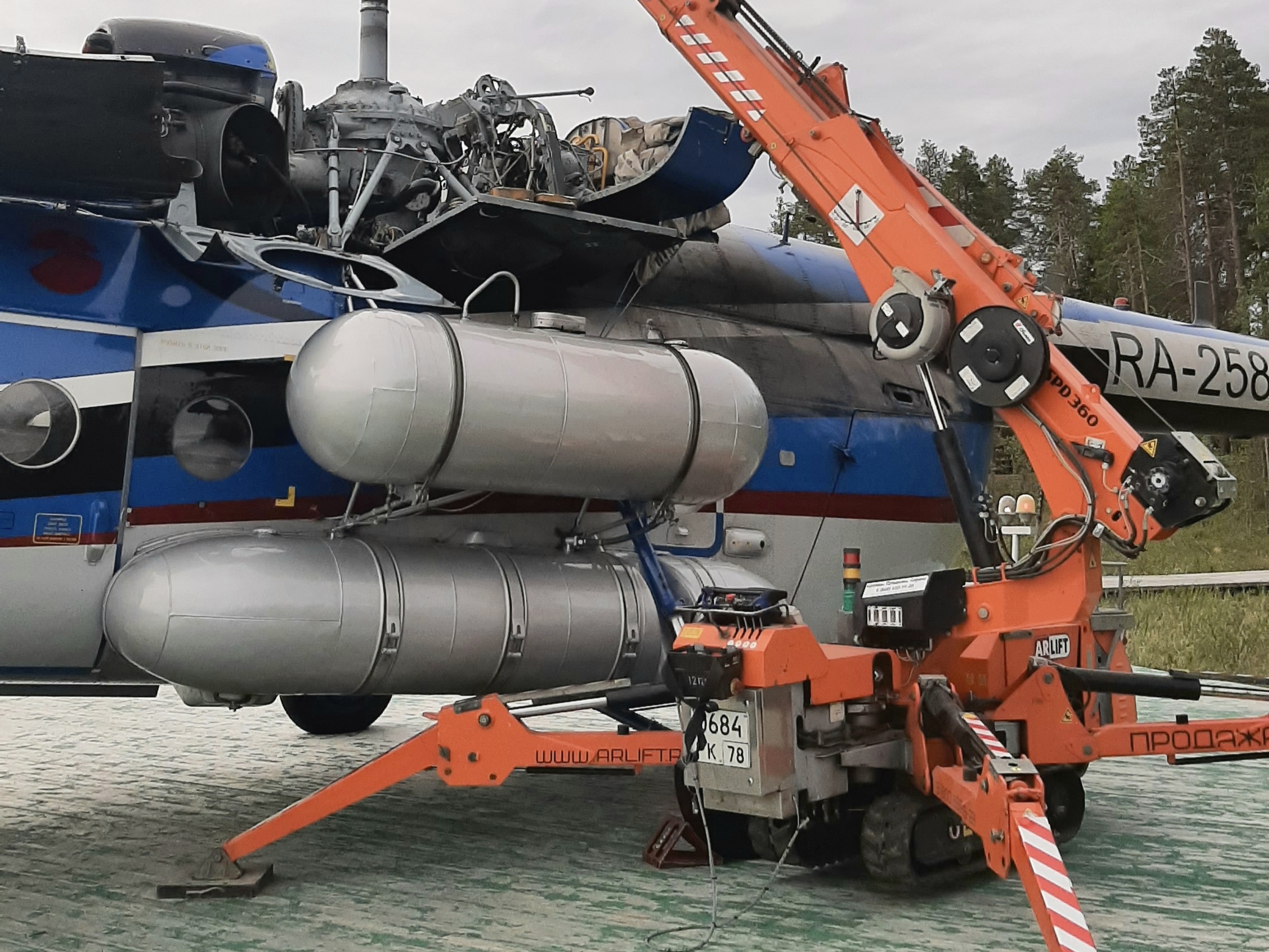 Мини-кран на Кольском полуострове: срочный ремонт вертолёта в тайге